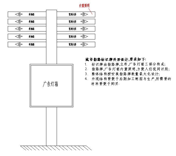 道路标识牌,又称指路牌。美安公司一款指路牌外观设计公开招标,要求如下: